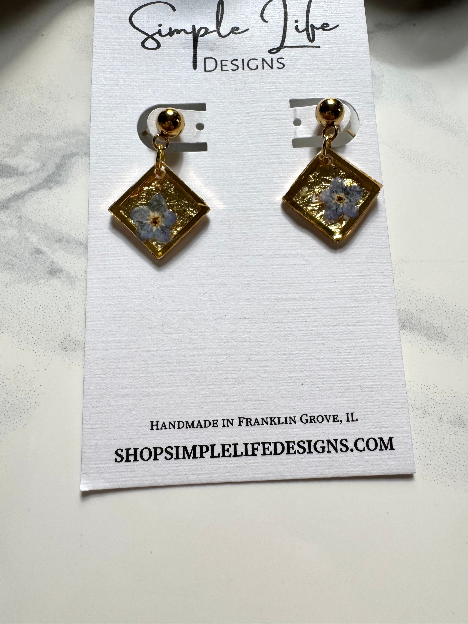 Made from real dried flowers. Please note the color may fade over time. Color will fade much quicker if stored in direct sunlight. If stored out of the light, the color should last. Please keep in mind that these earrings are handmade and there may be slight variations from the picture. No two earrings will be exactly alike.