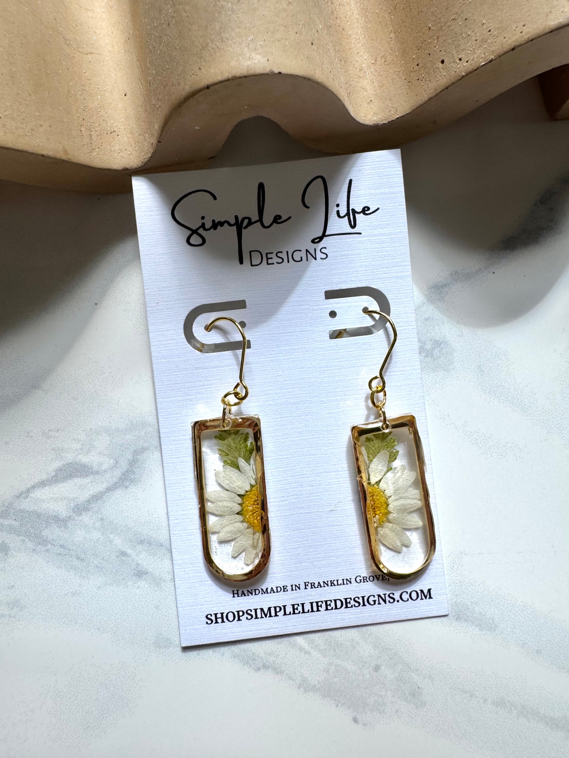 Made from real dried flowers. Please note the color may fade over time. Color will fade much quicker if stored in direct sunlight. If stored out of the light, the color should last. Please keep in mind that these earrings are handmade and there may be slight variations from the picture. No two earrings will be exactly alike.