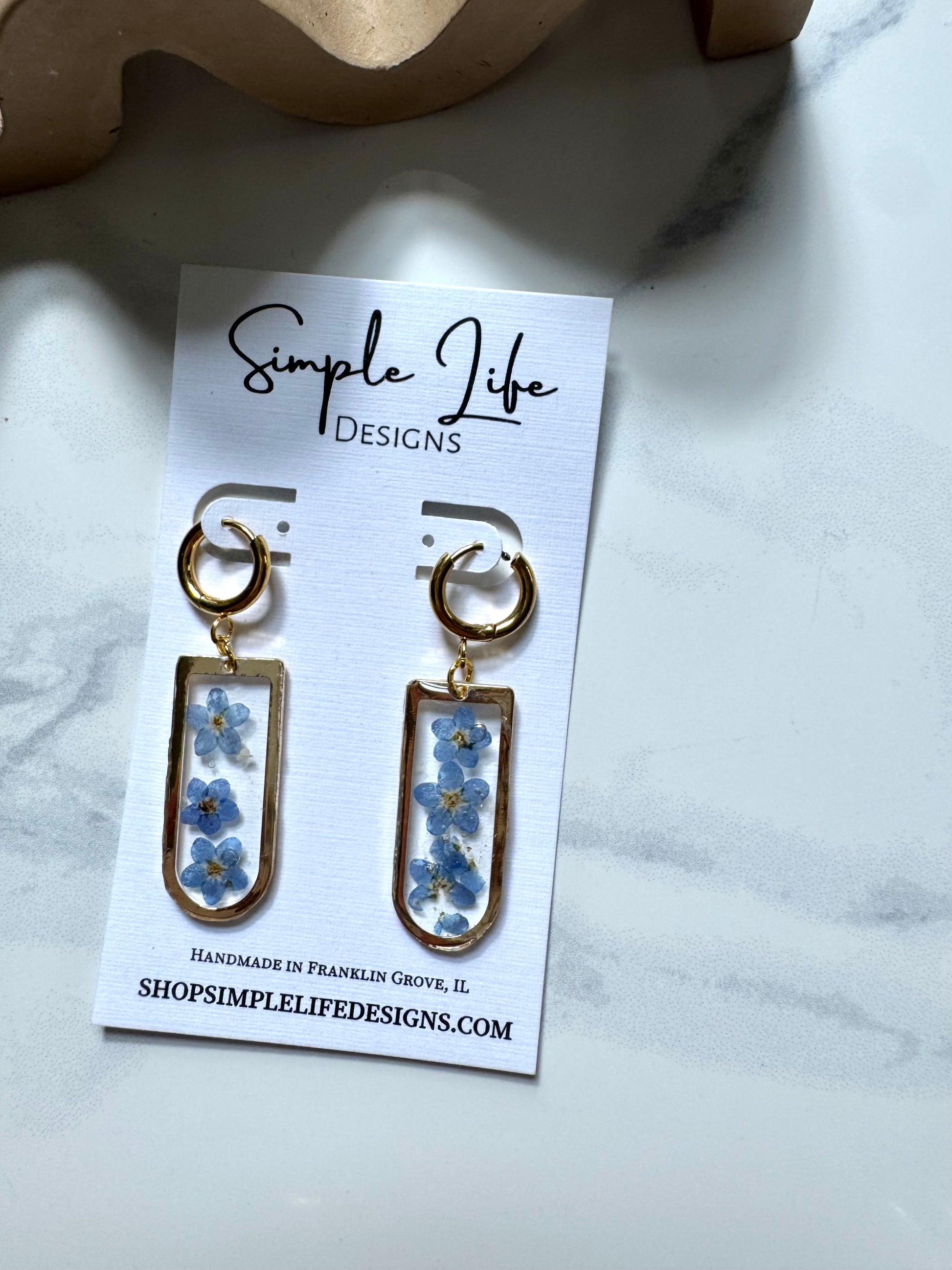 Made from real dried flowers. Please note the color may fade over time. Color will fade much quicker if stored in direct sunlight. If stored out of the light, the color should last. Please keep in mind that these earrings are handmade and there may be slight variations from the picture. No two earrings will be exactly alike.