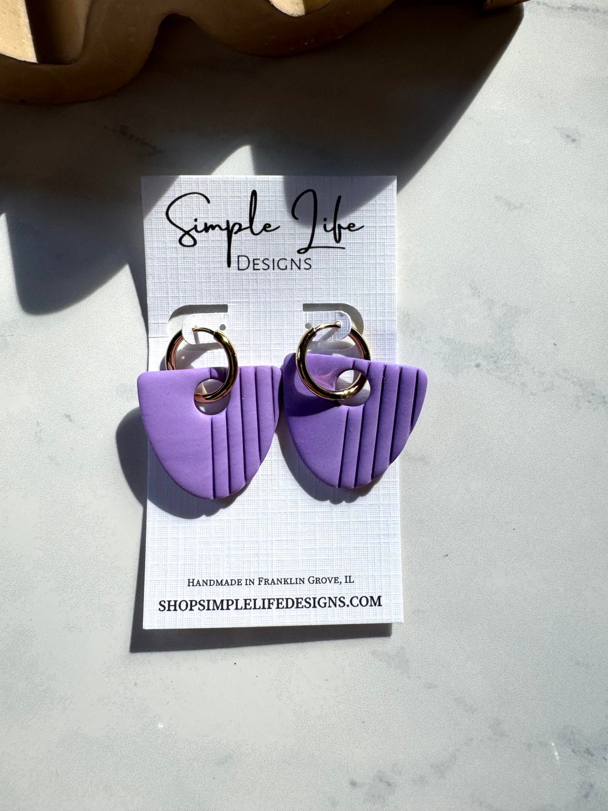 Purple Clay & Gold Hoops